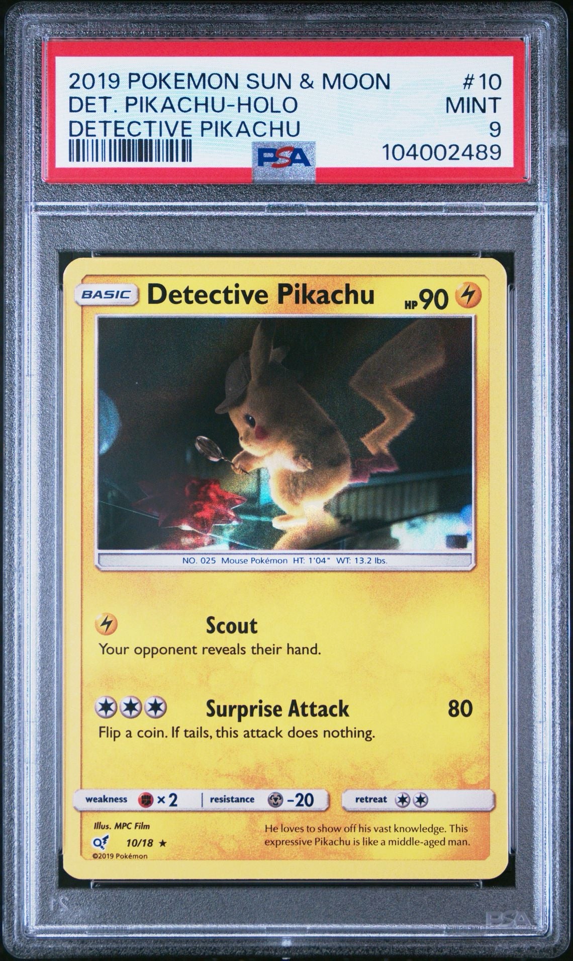 Detective Pikachu - Holo #10 | 2019 POKEMON SUN & MOON Detective Pikachu - PSA 9